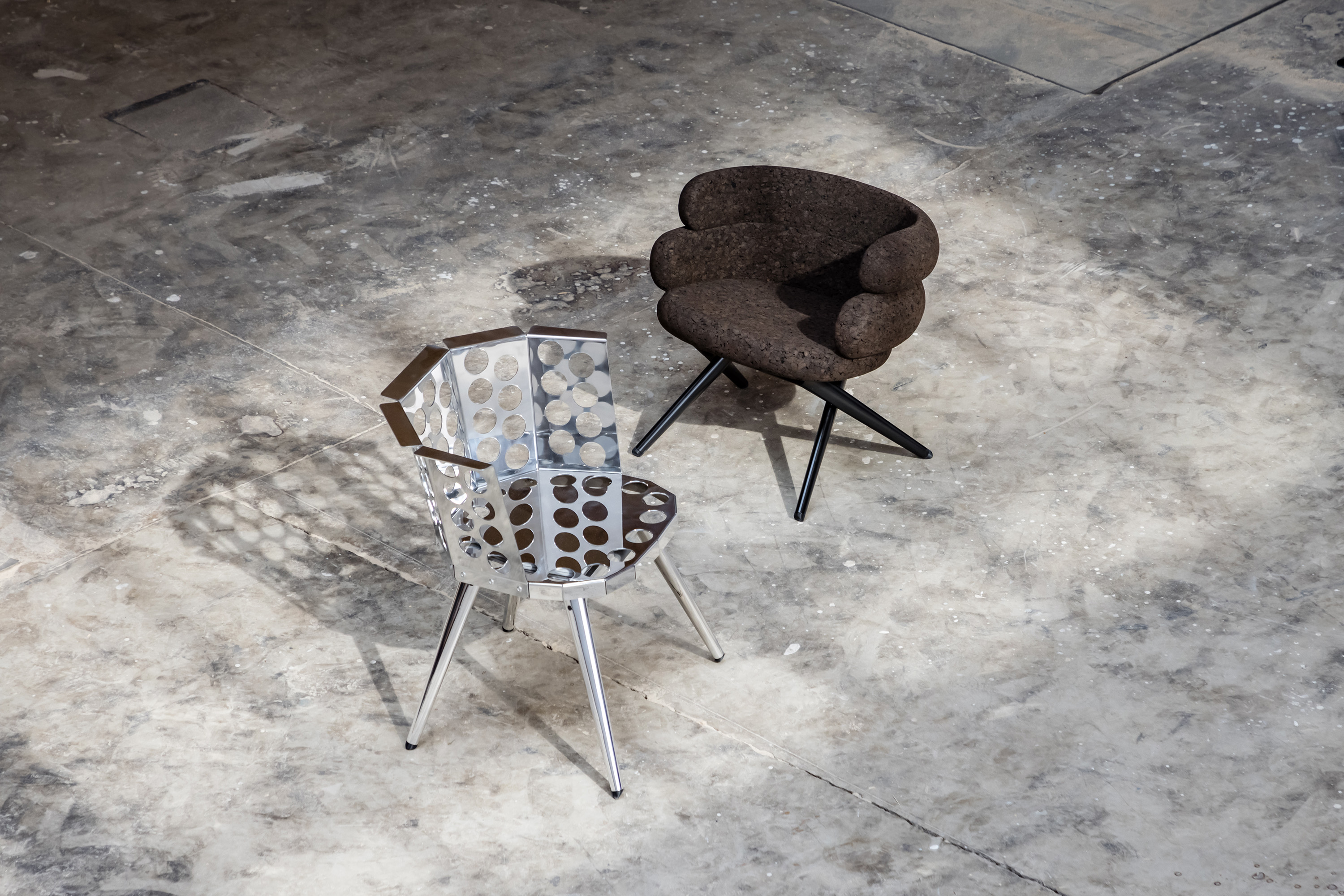 Das visionäre Design der Sitzschalen von Werner Aisslinger ist so gestaltet, dass sie sowohl in der hohen wie auch der tiefen Sitzposition proportional und ästhetisch anmuten. Der 2-in-1 Chair Kork ist ein voluminöser und organischer Allround-Stuhl, der aus einem Upcycling-KorkKomposit besteht.